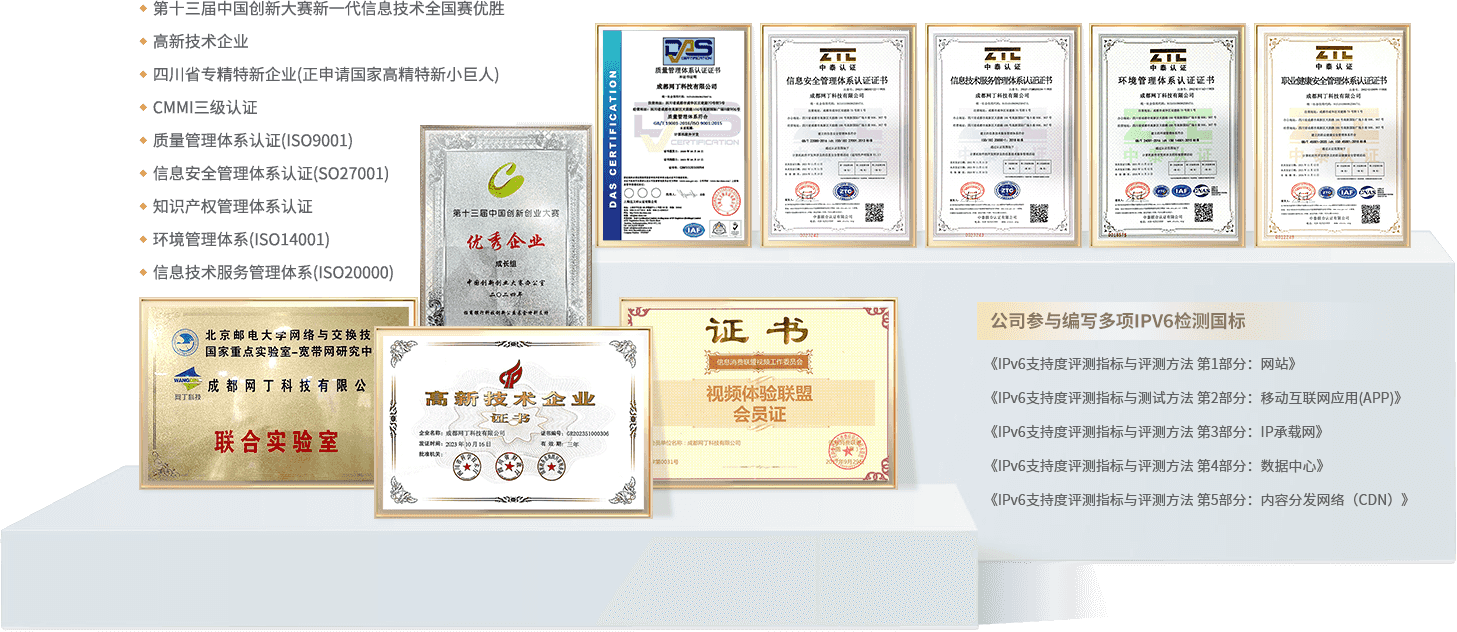 公司是中國寬帶質量聯盟和國家視頻體驗聯盟會員,與北京郵電大學成立了"國家網絡質量分析聯合實驗室",與工信部信通院、三大運營商研究院、各行業研究院、騰訊、阿里、華為、中興、等建立長期合作伙伴關系。擁有50+項國家發明或實用新型技術專利及軟著,經過多年自主研發,形成了從運營商到企業網以及個人家庭網絡的智能網絡運維產品系列,為政府、運營商、金融、能源、交通、制造、互聯網等數十個行業客戶提供先進的下一代網絡質量運維精細化管理解決方案。